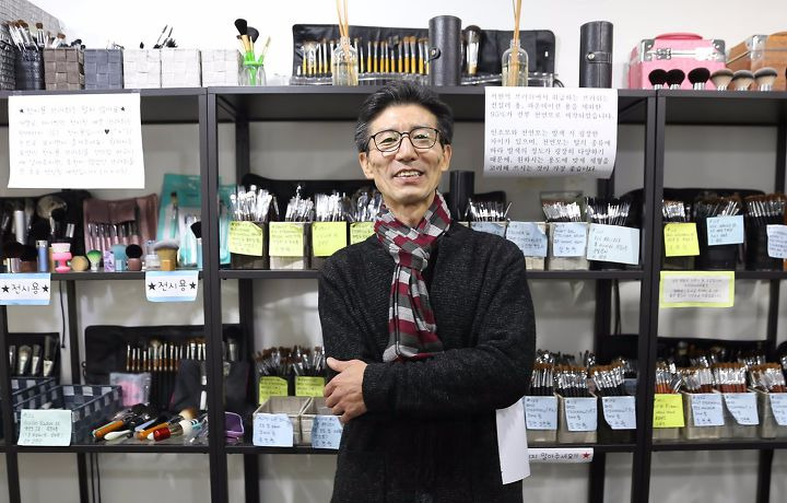 홍대에 위치한 15평짜리 안씨 가게를 찾는 손님은 하루에 300여 명 정도. 그중 100명~150명의 메이크업 상담을 직접 해준다. 그러다 보면 앉을 시간도 없이 하루가 간다. 지금은 작은 브러시 가게를 운영하고 있지만 25년 전만 해도 연 80억원의 매출을 올리던 무역업자였다.